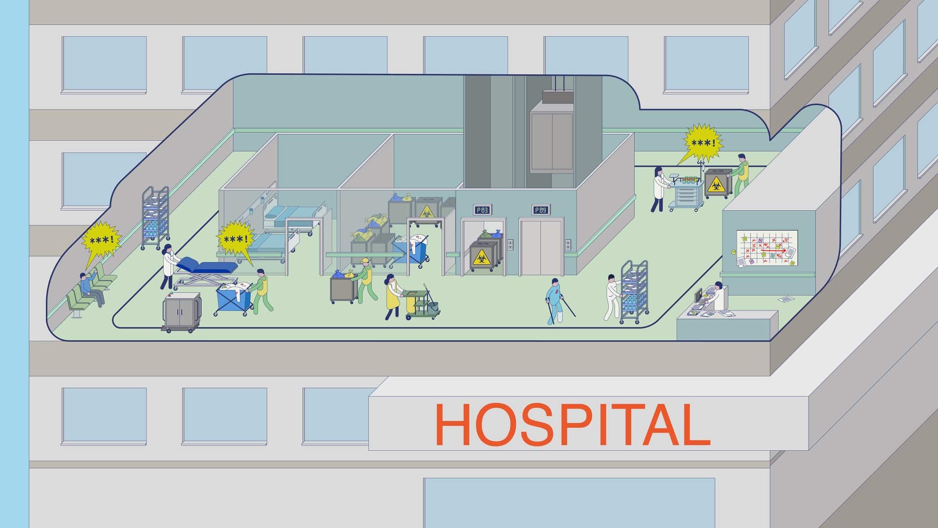Hospitals face unique waste management challenges—limited space, constant activity, and high hygiene demands. Traditionally, waste and soiled linen are stored locally in the wards and transported in corridors and elevators. Patients and healthcare professionals risk exposure to both pathogens and odours.